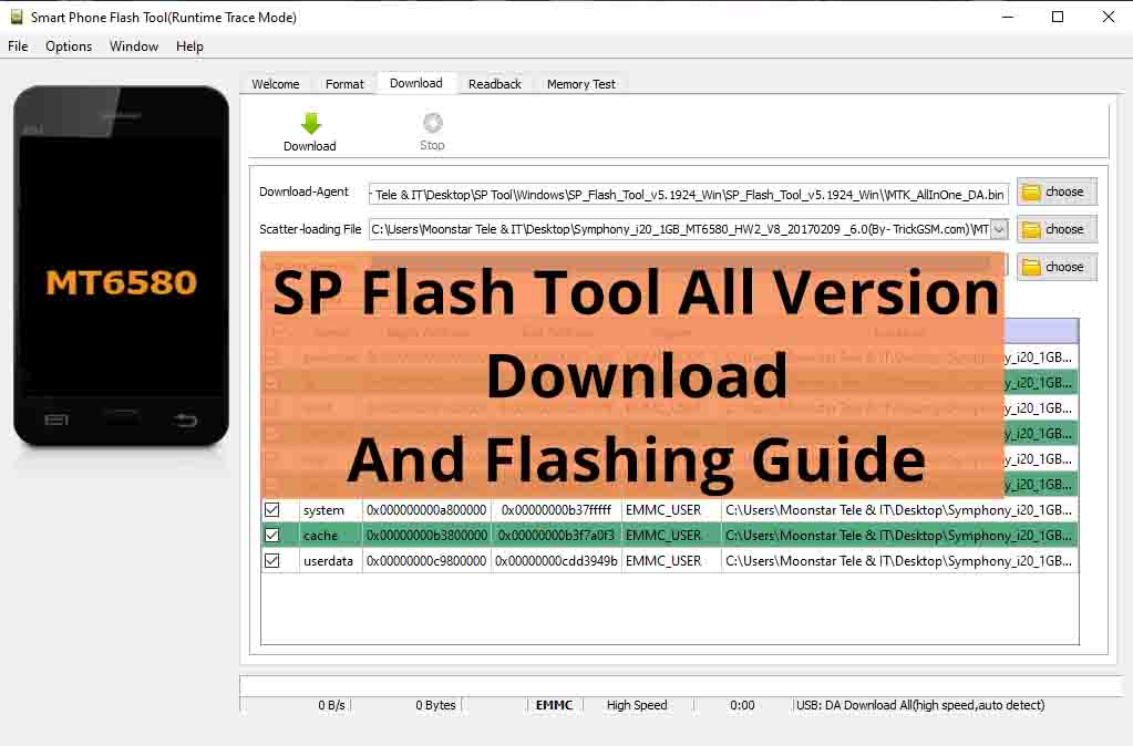 SP flash tool (Smartphone Flash Tool) is software that mainly helps you to flash MediaTek (MTK) based android smartphone, Stock ROM, Custom ROM & fixing in some extreme cases. firmware upgrade, update Flash recovery, format emmc, unbrick bricked MediaTek based android device, etc. SmartPhone FlashTool is working with MediaTek Android smartphones (MTK based) You can Download SP FlashTool from our site. You need to load a scatter file for MTK based device for flashing the android devices. Sp Flash Tool can be used on Windows and Linux operating systems. this Tool was Development by Mediatek Inc. visit here